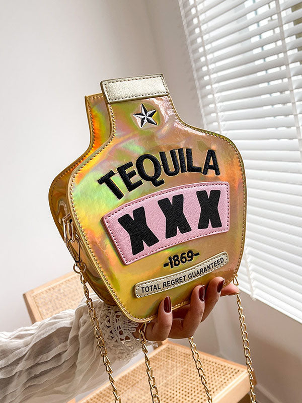 Chains Geometric Letter Print Zipper Crossbody Bags