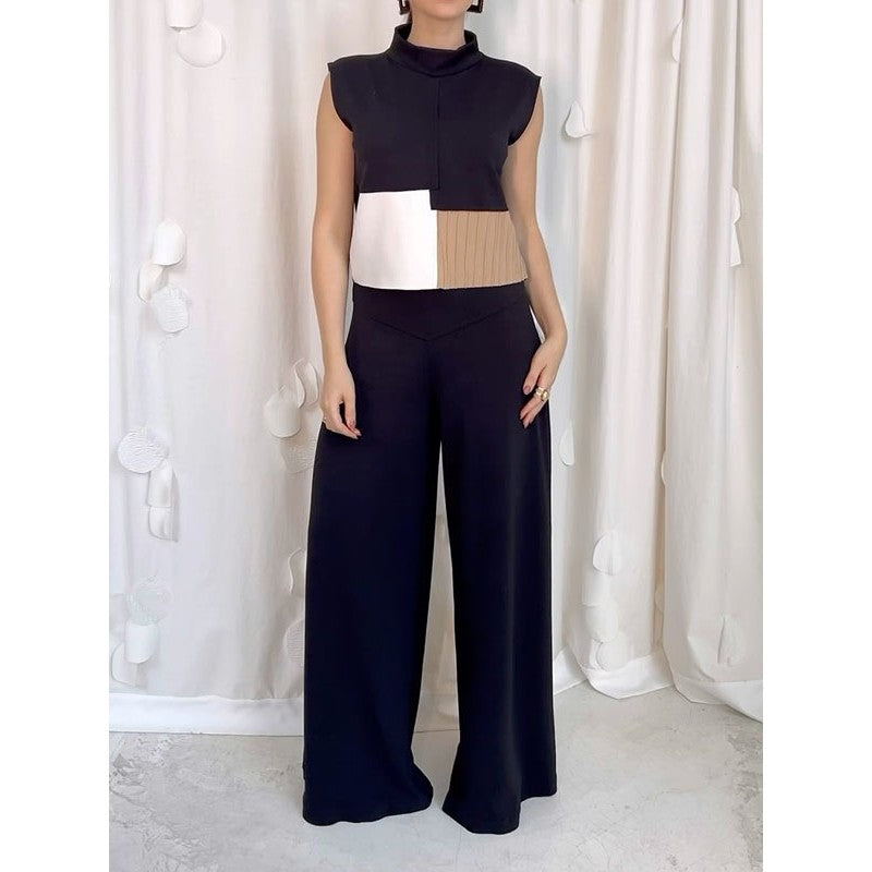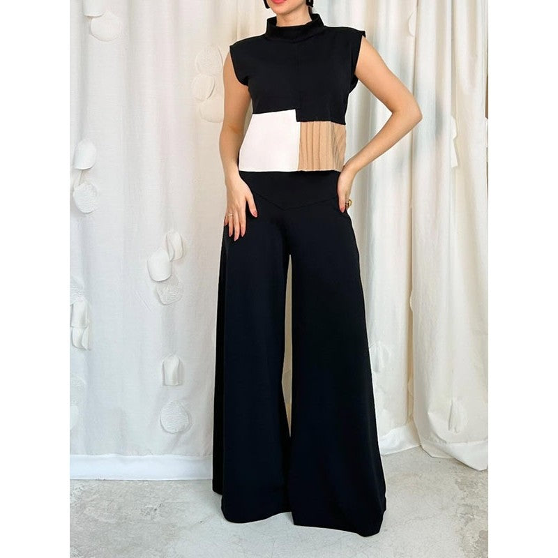 Urban Tune Contrast Color Split-Joint Sleeveless Jumpsuits