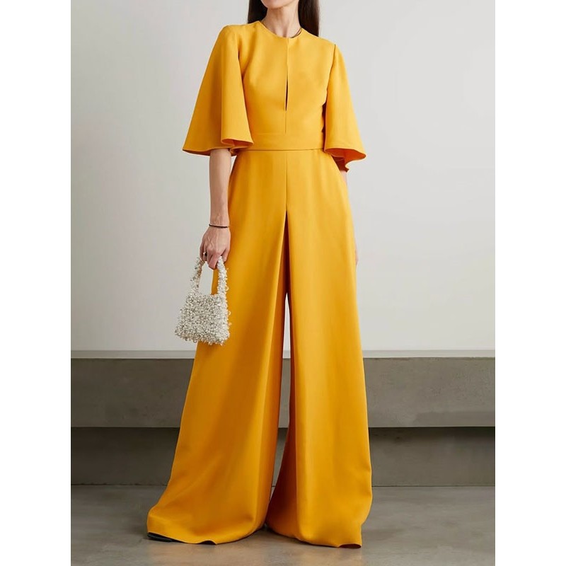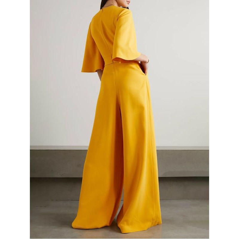Solid Color High Waist Jumpsuit With Fly Sleeves