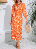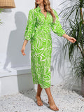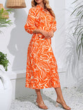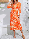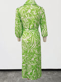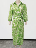 A-Line High Waisted Elasticity Printed Tied Waist Lapel Midi Dresses Shirt Dress