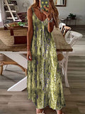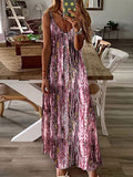 A-Line Loose Printed Spaghetti-Neck Maxi Dresses