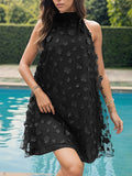 A-Line Sleeveless Flower Shape Solid Color Split-Joint Round-Neck Mini Dresses