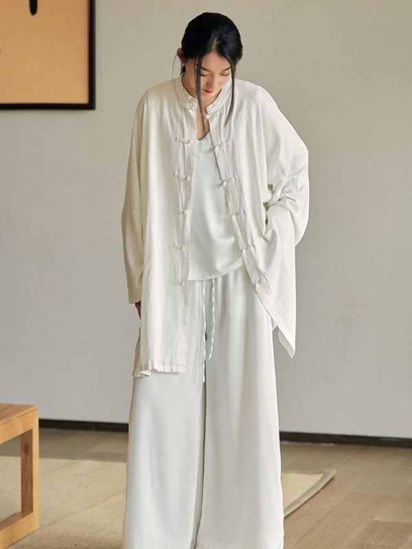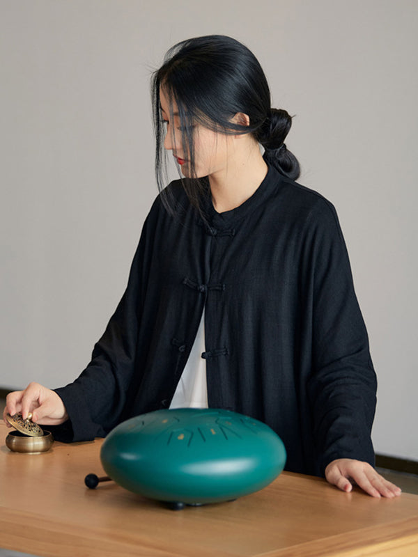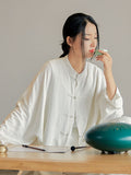 Artistic Retro Loose Solid Color Linen Blouse