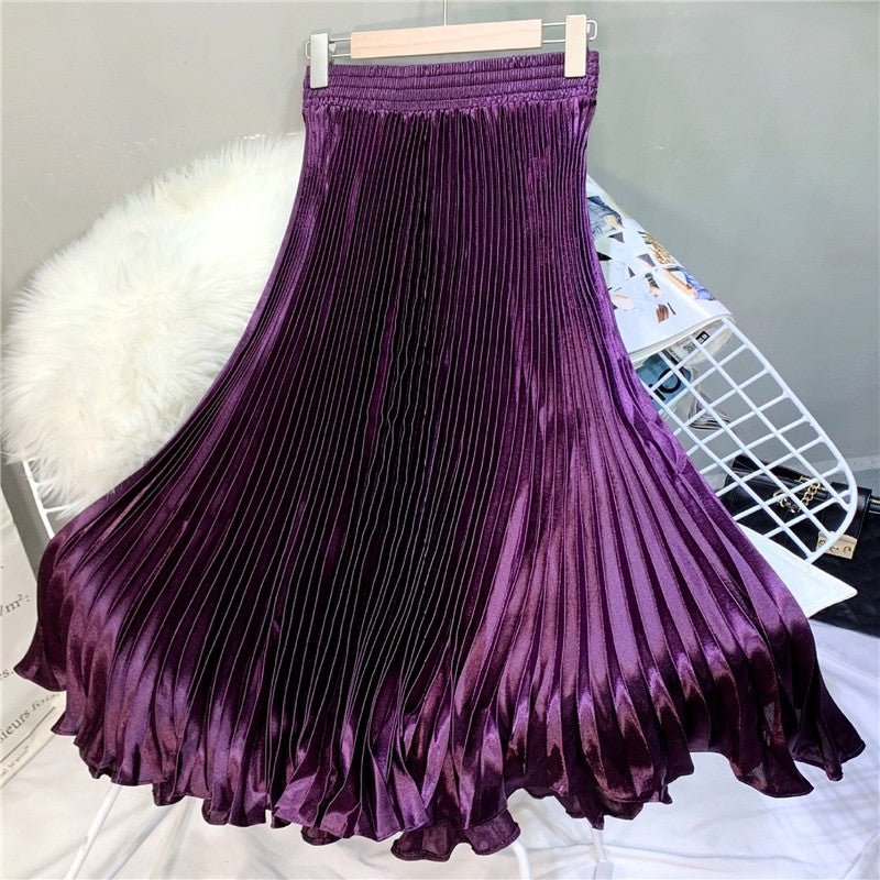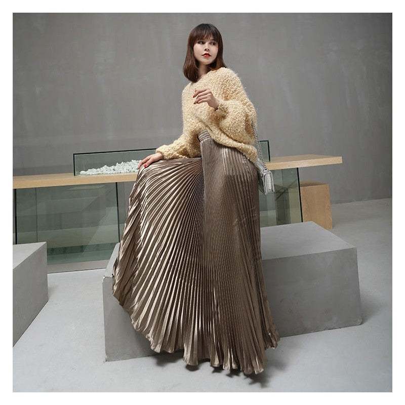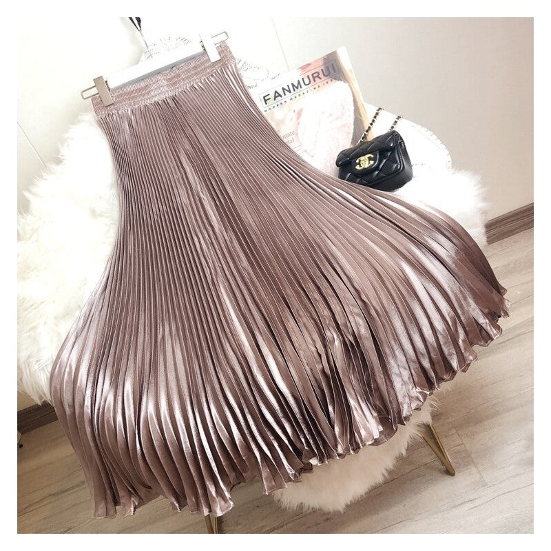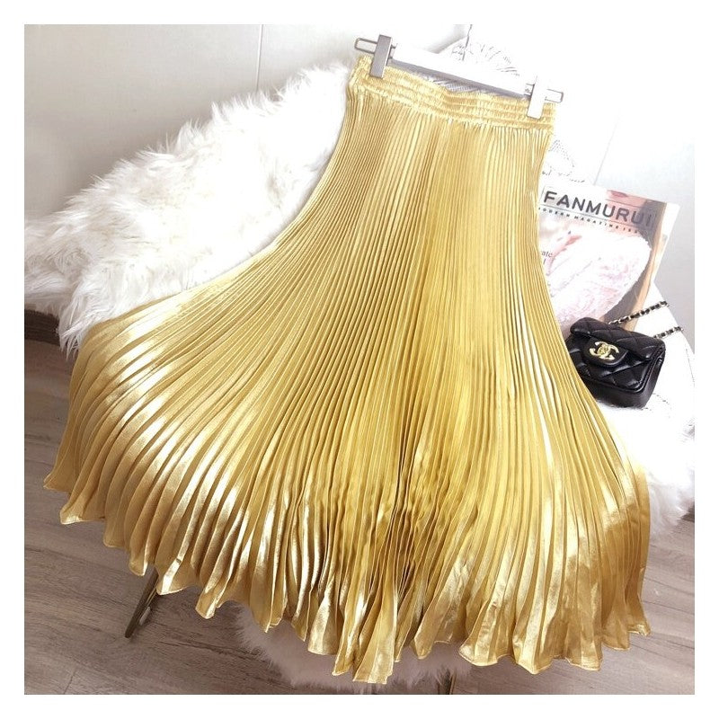 Bright Reflective Satin Pleated Mermaid Skirt Half Skirt