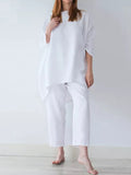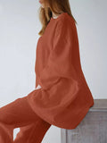 Casual Loose Long Sleeves Solid Color T-Shirt Top&Pants Two Pieces Set