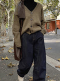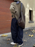 Casual Loose Wide Leg Solid Color Jean Pants Bottoms