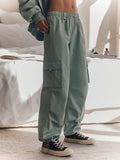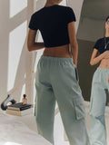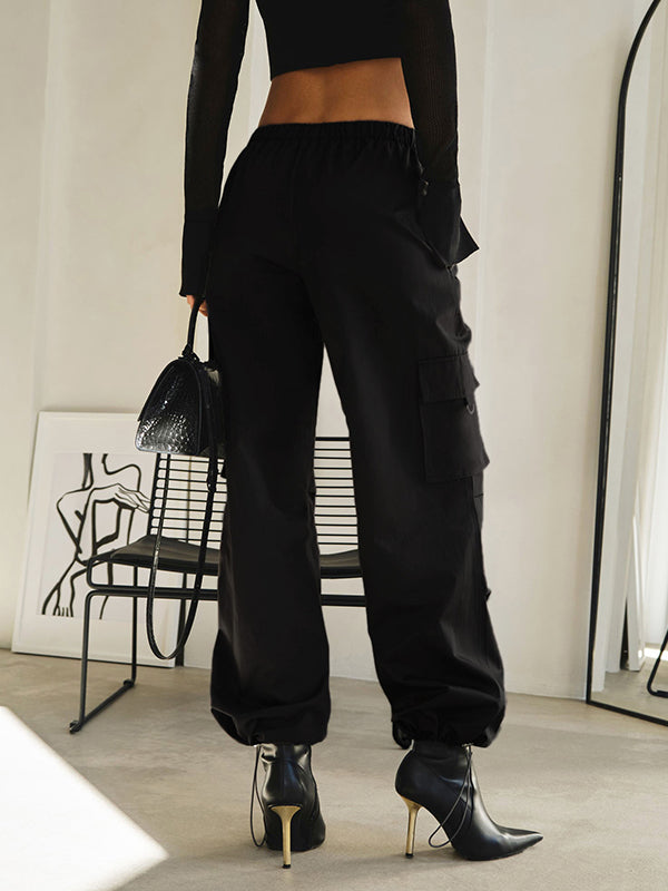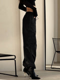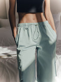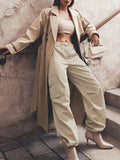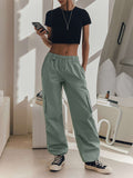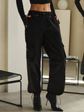 High Waisted Loose Drawstring Elasticity Pockets Split-Joint Pants Trousers