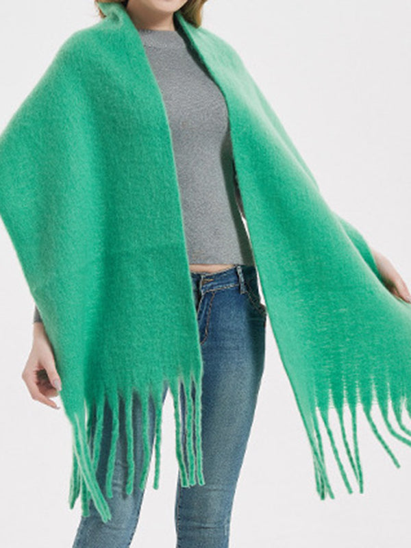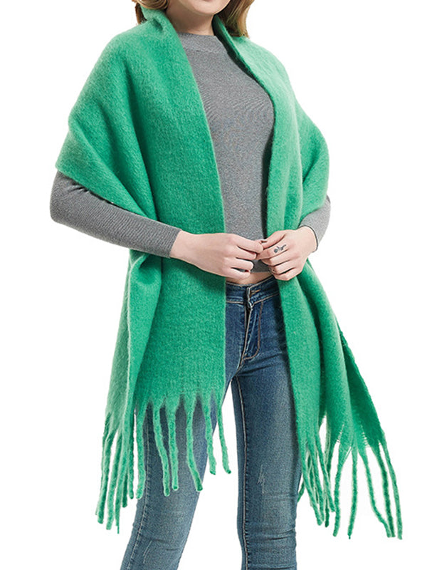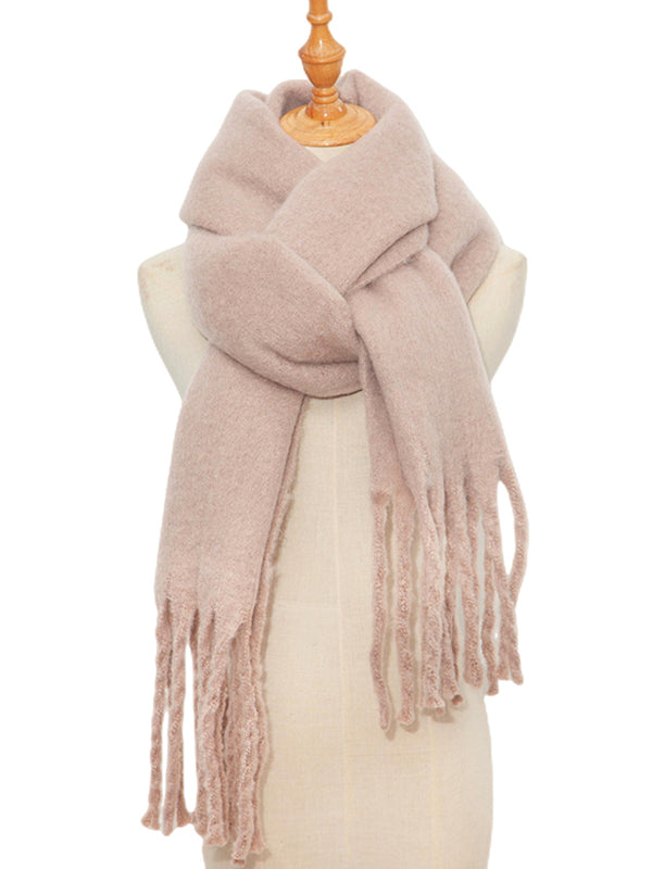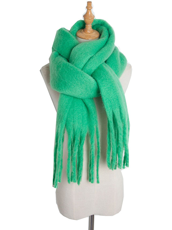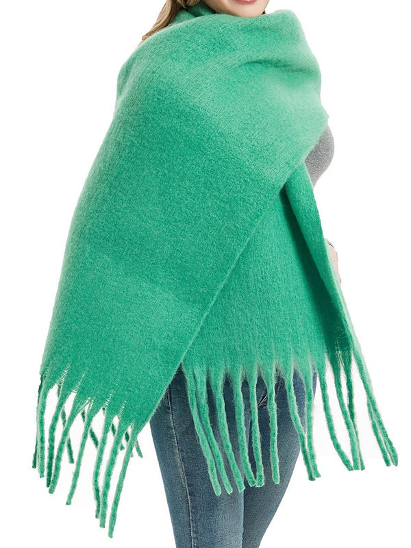 Keep Warm Solid Color Tasseled Velvet Shawl&Scarf