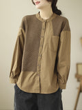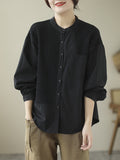 Long Sleeves Loose Asymmetric Buttoned Pockets Split-Joint Round-Neck Blouses&Shirts Tops