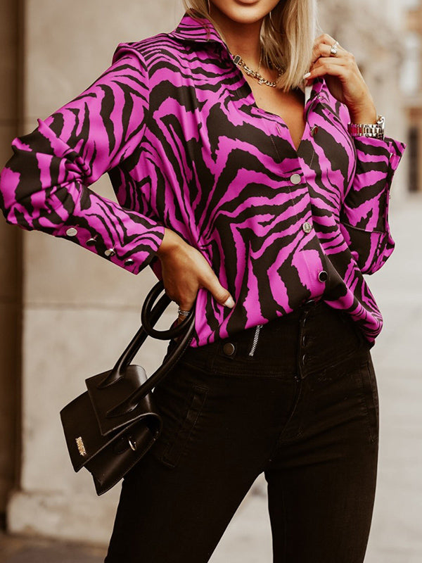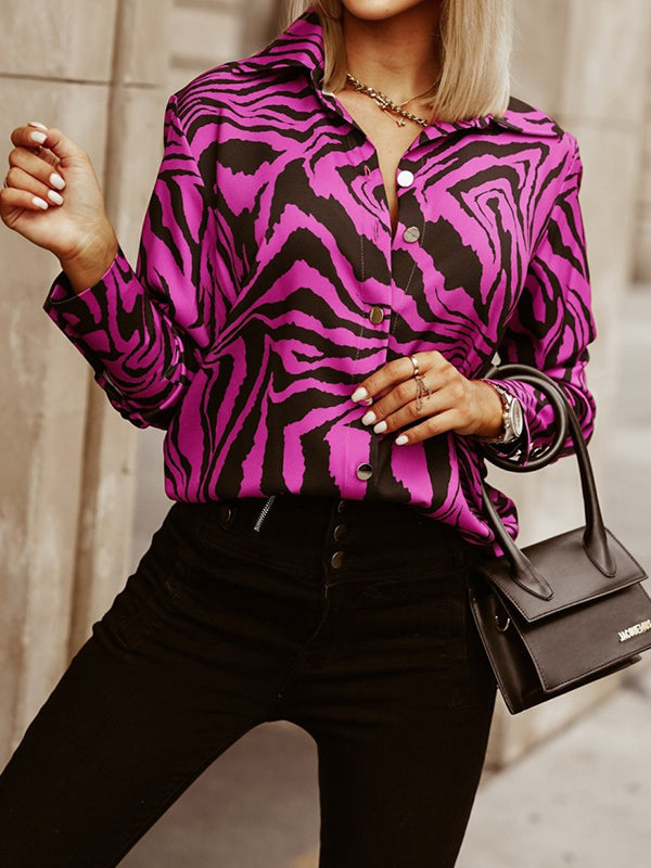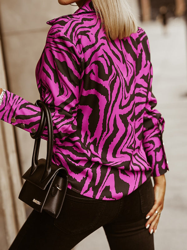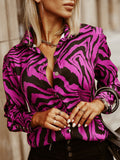 Long Sleeves Loose Printed Zebra-Stripe Lapel Blouses