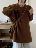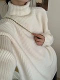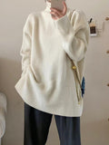 Long Sleeves Loose Solid Color Split-Joint Split-Side High Neck Sweater