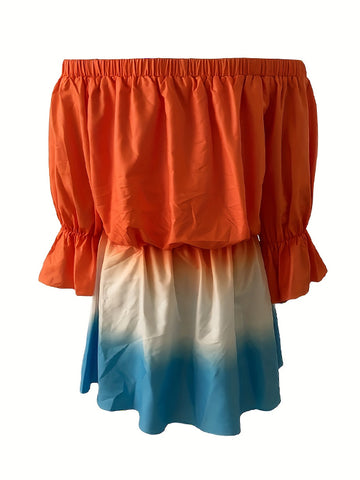 Loose Ruffle Sleeves Elasticity Falbala Gradient Off-The-Shoulder Mini Dresses