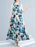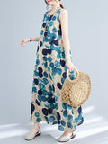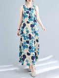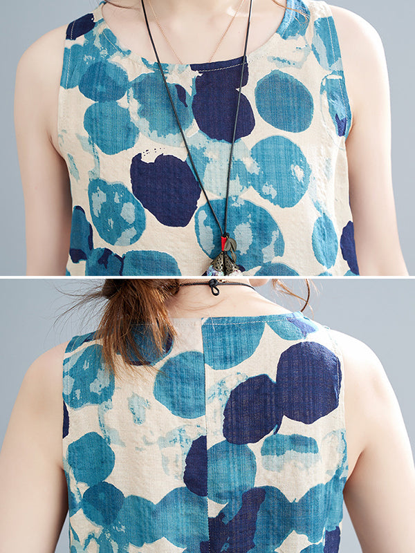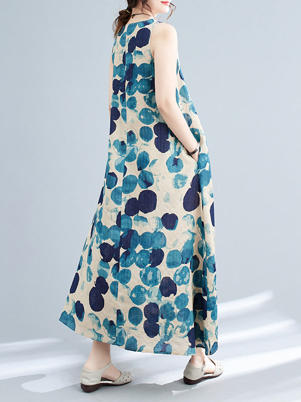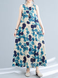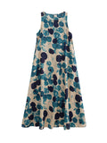 Loose Sleeveless Printed Round-Neck Midi Dresses