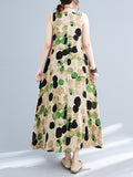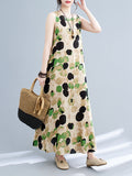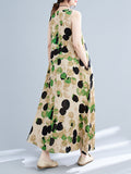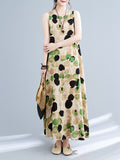 Loose Sleeveless Printed Split-Joint Round-Neck Maxi Dresses