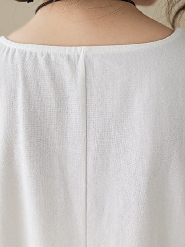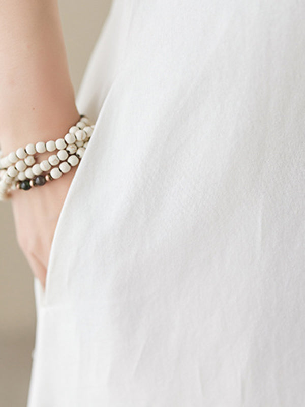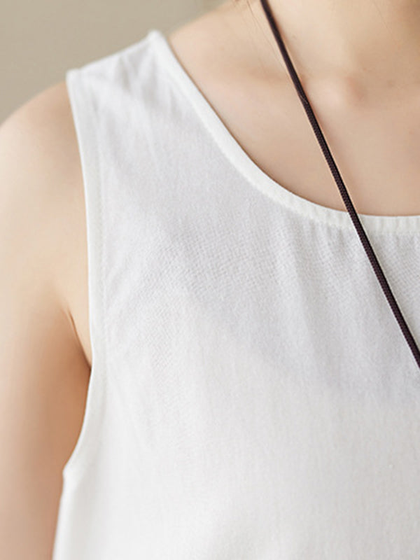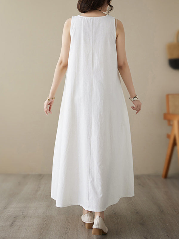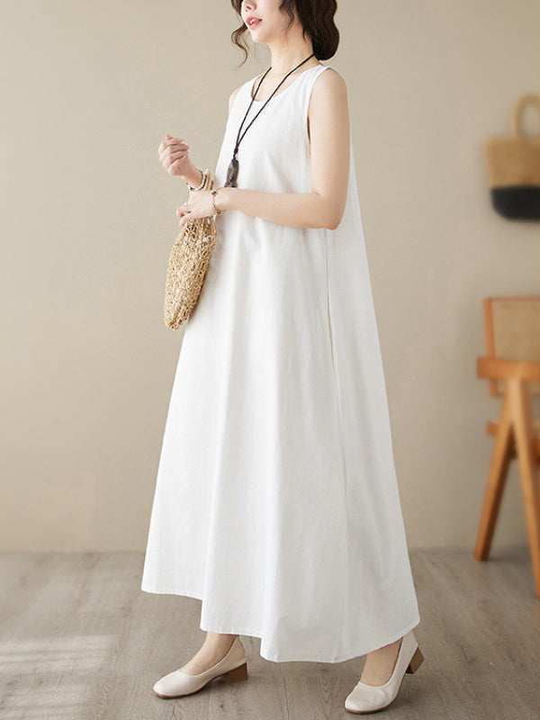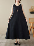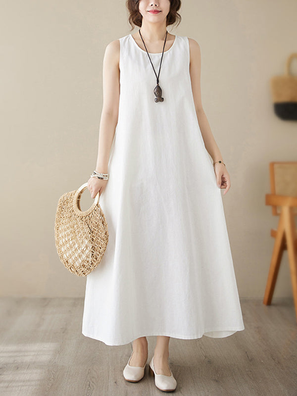 Loose Sleeveless Solid Color Round-Neck Midi Dresses
