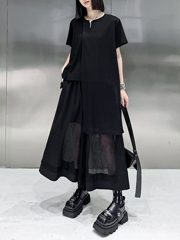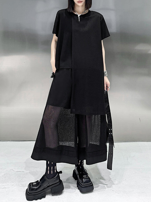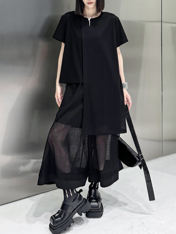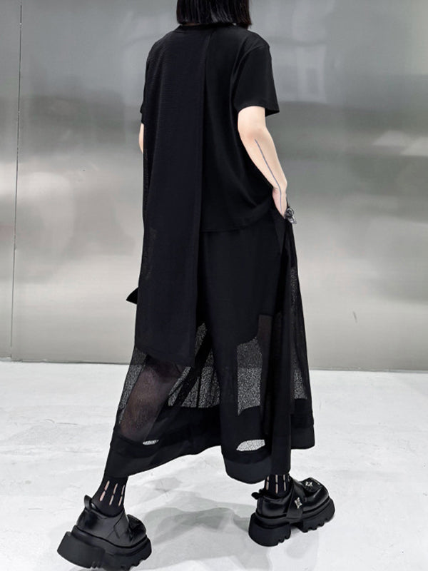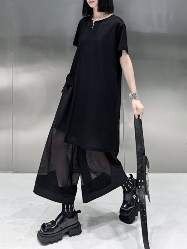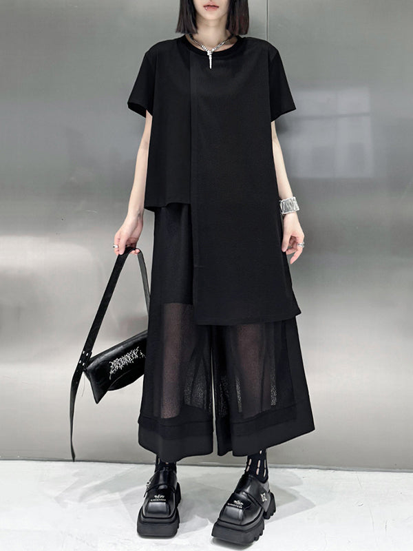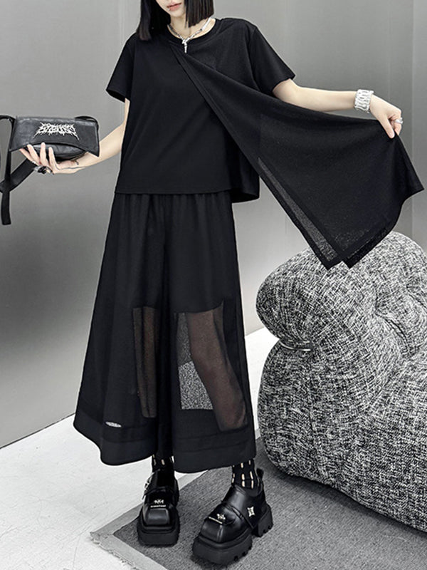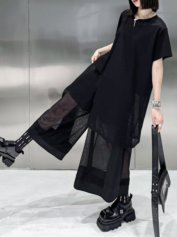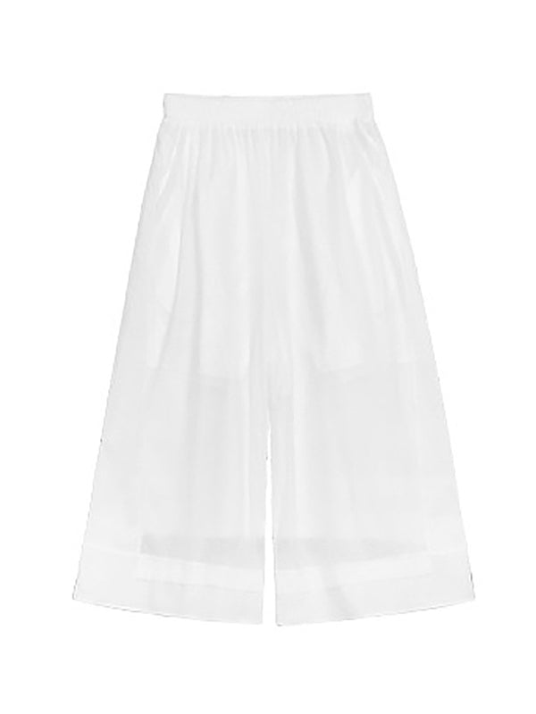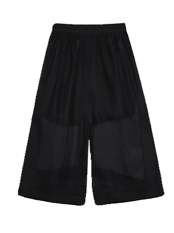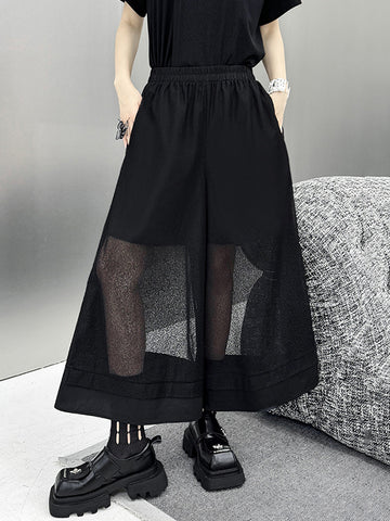 Loose Wide Leg See-Through Solid Color Split-Joint Pants Trousers