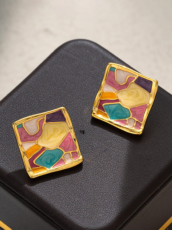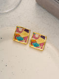 Multi-Colored Enamel Oil Painting Style Square Earrings