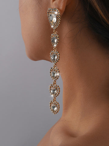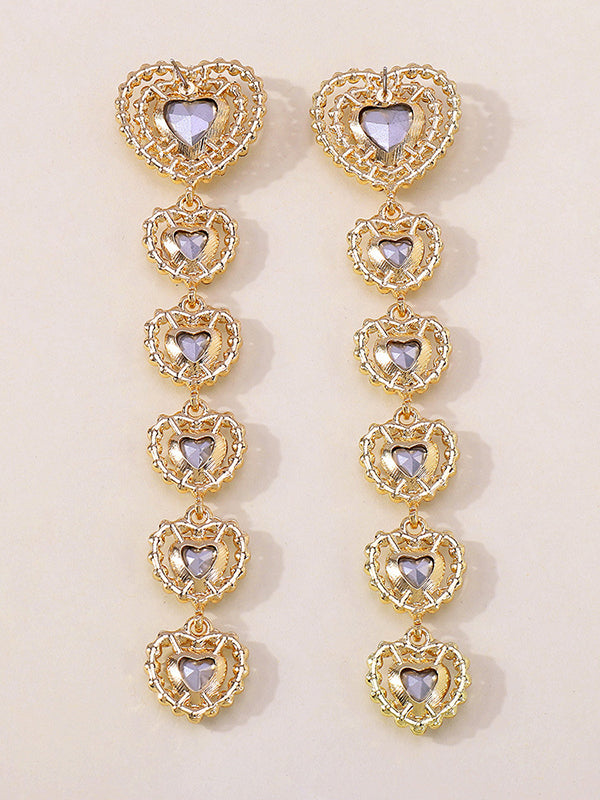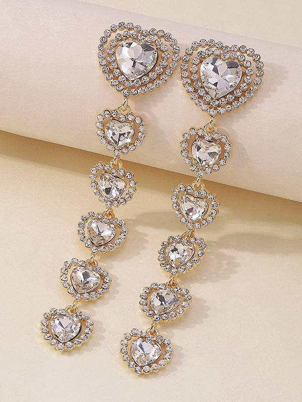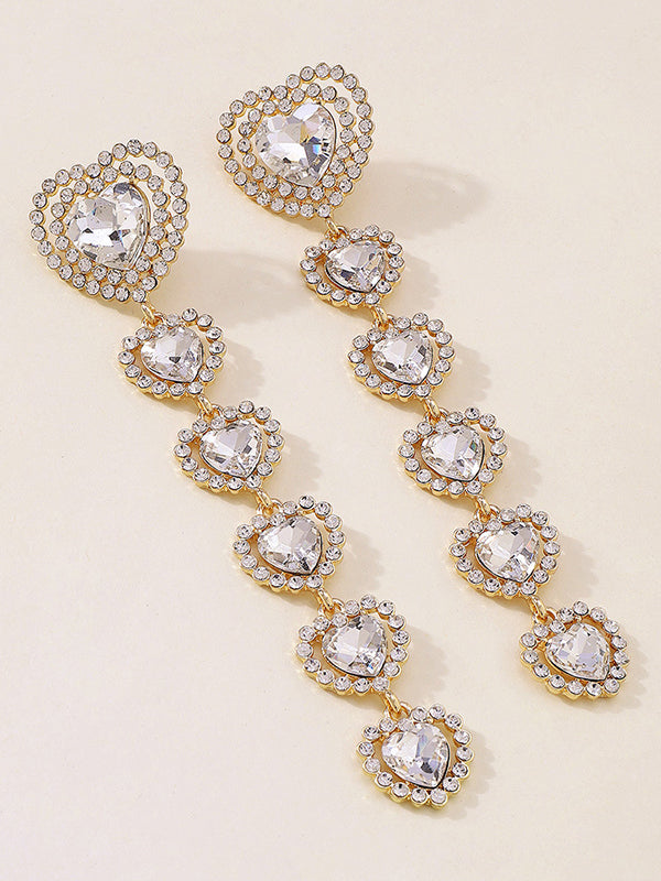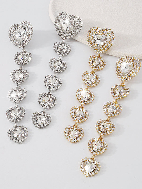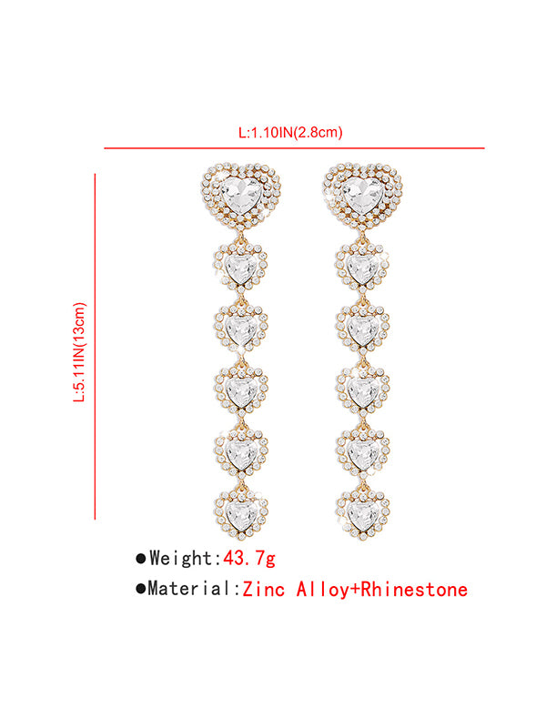 Normcore Heart Shape Rhine Stones Drop Earrings