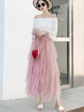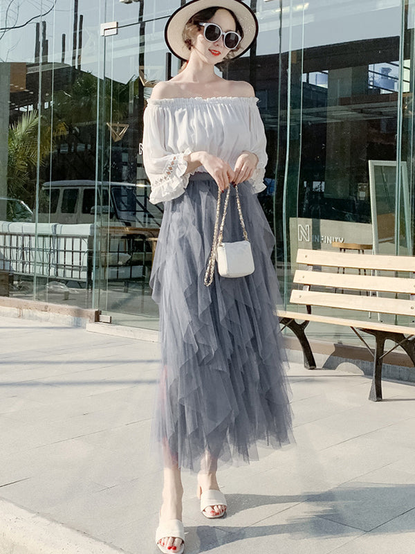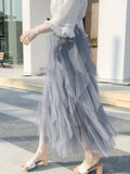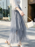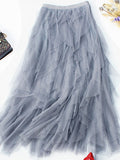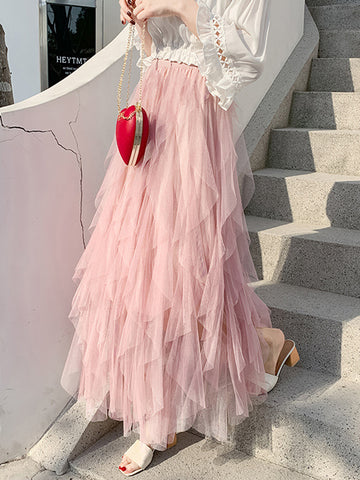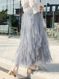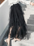 Original Stylish Irregular Mesh Solid Color Skirt