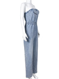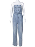 Sleeveless Straight Leg Elasticity Pleated Pockets Split-Joint Tube Jumpsuits