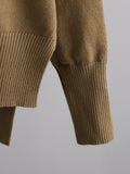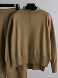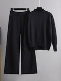 Stylish High-Low Long Sleeves Split-Side Solid Half Turtleneck Sweater Tops & Wide Leg Pants Two Pieces Set