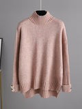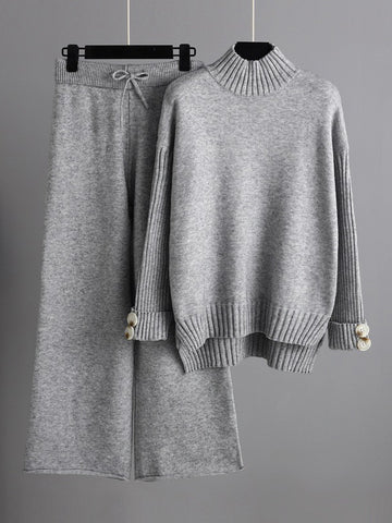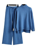 Urban Long Sleeves Solid Color Half Turtleneck Sweater Tops & Wide Leg Pants Two Pieces Set