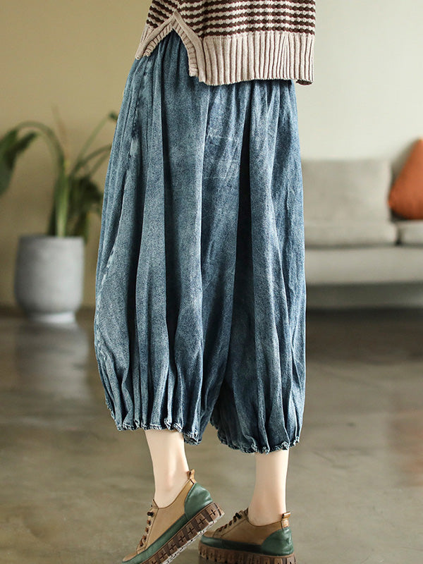 Vintage Elastic Waist Wide Leg Over Size Jean Pants