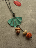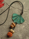 Vintage Wooden Beaded Leaf Shape Necklaces Accessories
